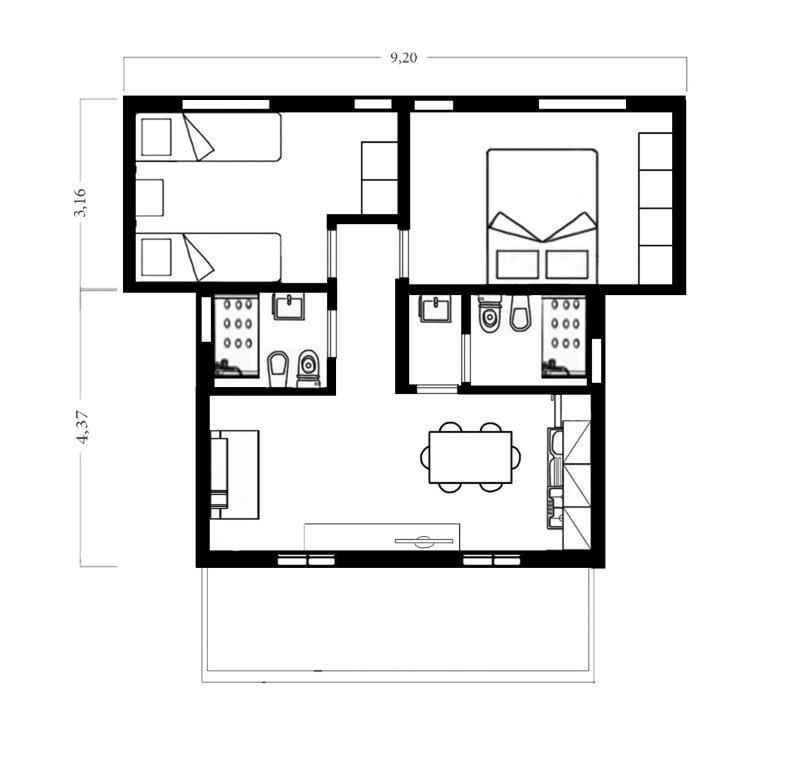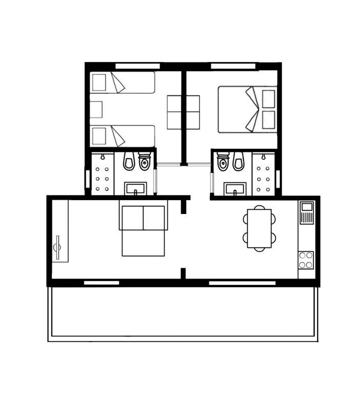 Les Villas Marina type 1 sont conçues pour les familles qui choisissent la commodité des espaces et de l’indépendance du village, tout en ayant accès et en pouvant utiliser tous les services. Ce type de maison peut accueillir confortablement jusqu’à 6 personnes. Ils se composent d’une cuisine ouverte avec vaisselle et micro-ondes, donnant sur le salon avec canapé-lit et TV, 2 chambres confortables (double et 2 lits simples), 2 grandes salles de bains avec bidet et douche. À l’extérieur, vous pourrez profiter du jardin exclusif meublé avec table et chaises, idéal pour des moments de détente ou de jeu en famille.